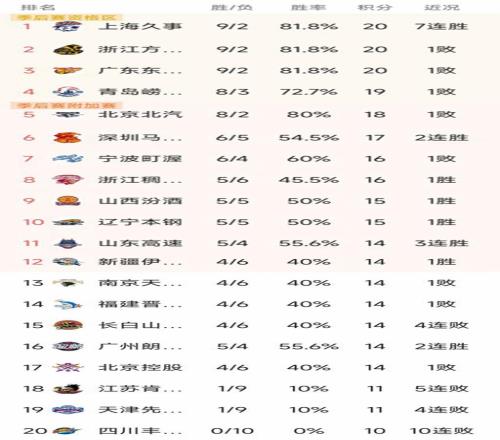 北京时间1月6日,昨晚的CBA常规赛第11轮结束了三场比赛,我们看看最新积分榜变动!