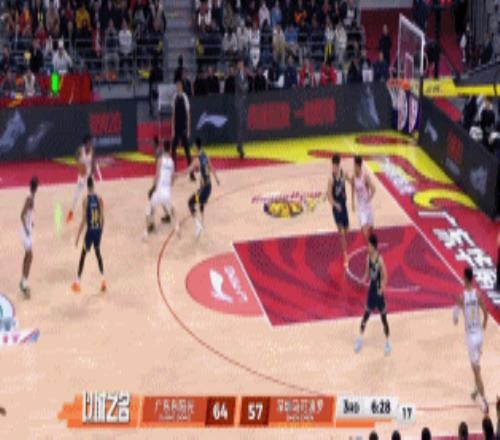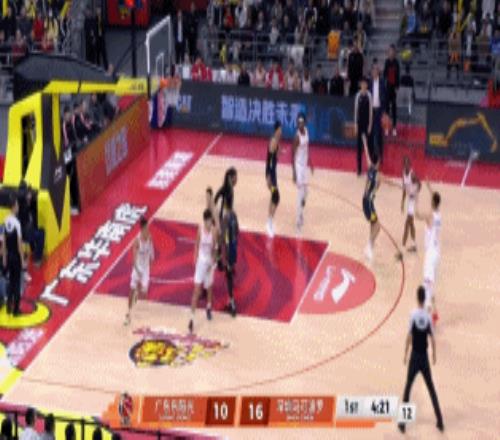 节中杜锋撤下徐杰换上张文逸,贺希宁撞开张文逸打出2+1,广东三分球连打3铁,与此同时,6分钟篮板更是1-7远远落后,周鹏飚进三分后,深圳领先来到19-10。
