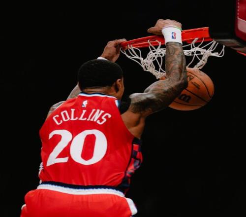 在哈登的梳理之下,快船一共有4名球员得分上双,其中莱昂纳德靠着7中4的三分球,砍下了26分、8个篮板和3次抢断的数据,科林斯则打出了15+6+1+5+4封盖的全能表现,靠着二人在进攻端的稳定输出,快船才艰难完成了逆转。