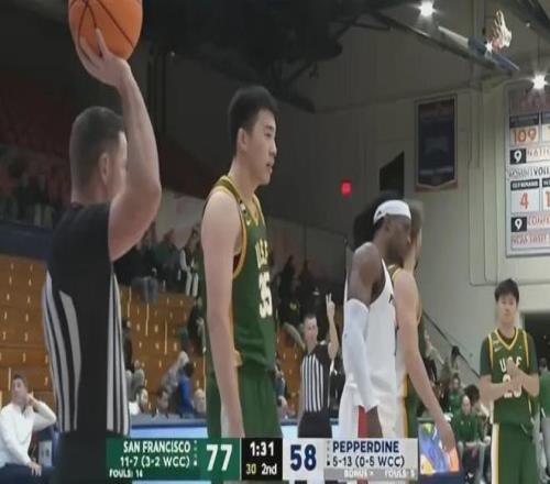 全场比赛王俊杰首发出战33分钟,投篮14中10,其中三分球9中7,无比高效轰下27分5板1帽,单场得分创造个人NCAA生涯新高,带领旧金山大学80-60锤爆佩珀代因大学,攻防两端存在感拉满。