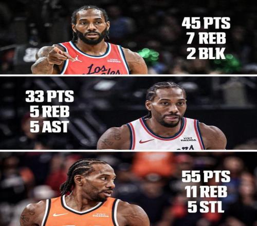 有了三分球这一武器,得分对莱昂纳德而言变得更加轻松。对阵国王,他三分9中5得到33分,对阵爵士则是三分16中6狂砍45分,快艇需要小卡拿出超级巨星的火力输出,而他确实做到了。