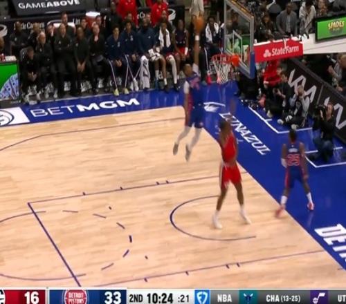 持续发力!活塞抢断小卡后反击奥萨尔神兵天降空接助队领先19分