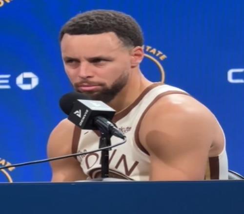 赛后,库里接受媒体采访期间记者手机铃声响了,库里随即跟随音乐开始扭动身体。