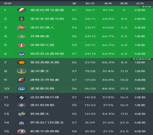 西部最新积分榜