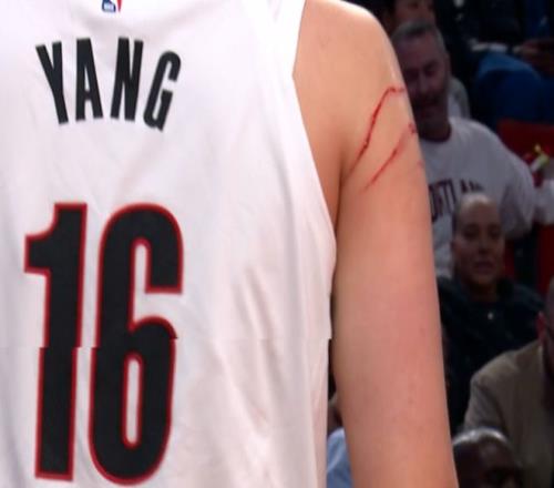 全场比赛16分31秒,4中1+三分3中1,拿到3分3篮板2助攻5犯规,小杨险些完成了一个暴扣,这场比赛对抗巨大,手臂上还有多道血痕。