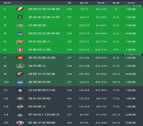 西部最新积分榜