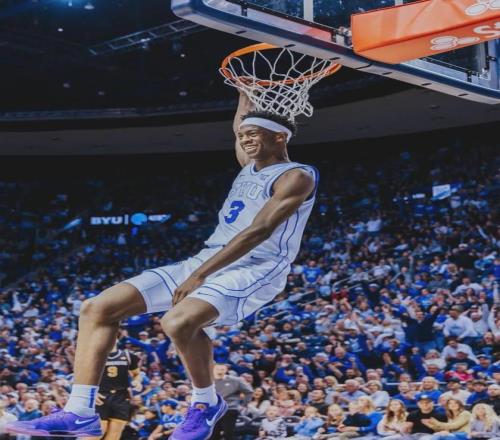 AJ-迪班萨本赛季在杨百翰大学打了15场,场均出战31.4分钟,得到23.1分7.2篮板3.9助攻1.5抢断0.5盖帽2.8失误,三项命中率:58.3%,35%,75.4%。迪班萨选秀模板是杰伦-布朗,爆发力一流,但控运技术和外线投射还需提高。