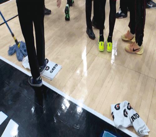 然后,你看到裁判和工作人员开始反复弯下腰,用手触摸地板,表情凝重。接着,一群保洁人员拿着拖把进场,开始一遍又一遍地擦拭。你等了半小时,一小时,一个半小时……大屏幕上始终没有出现跳球倒计时,只有工作人员不知疲倦的擦地身影。