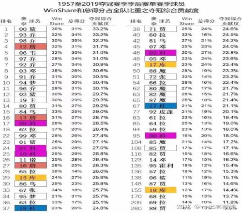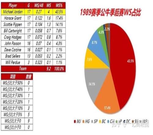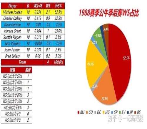 再看看这个统计就知道了,皮蓬的6冠,可以说全是乔丹单核带队送给他的福利