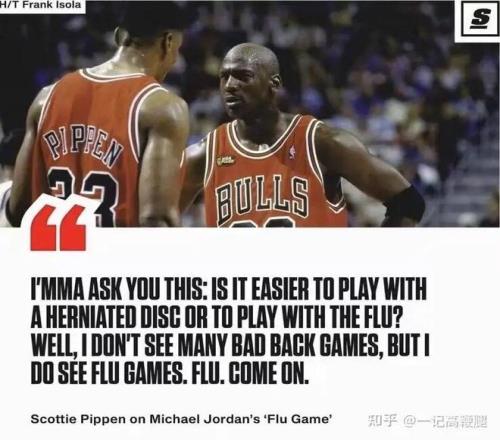 看看下面图片说了些什么,皮蓬又开始玻璃心,反复强调自己98年腰椎间盘突出比乔丹97食物中毒严重的多,皮蓬不停地向媒体抱怨想求一波同情,结果却得到当时媒体一句“35岁乔丹带着腰椎间盘突出的皮蓬都能夺冠”……