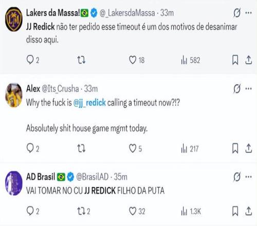湖媒:雷迪克根本没有请求暂停,这才是我对湖人失去信心的原因之一。这场比赛真的糟透了。