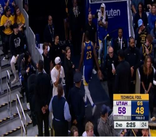 追梦格林对着次奥连续抱怨,导致他连吃两T被裁判给直接驱逐离场,追梦格林也是无奈提前返回更衣室,结束他本场比赛的征程。