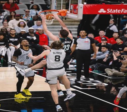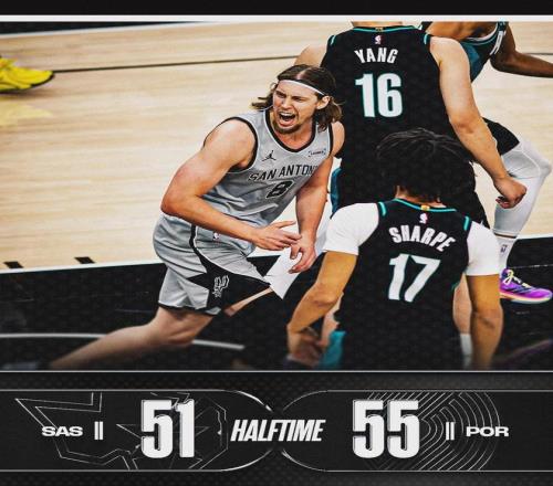 半场战罢,开拓者55-51领先马刺4分。克林根上半场只打了17分钟,8投7中砍下18分8篮板2助攻。开拓者主帅斯普利特虽然是中锋,但他不擅长用内线球员,如果克林根换支球队,数据会更好。易边再战,马刺很快追平比分。