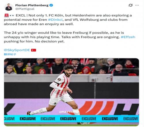 体育播报1月11日宣 据德国天空体育报道,科隆、海登海姆、沃尔夫斯堡等队有意弗赖堡边锋丁克希。