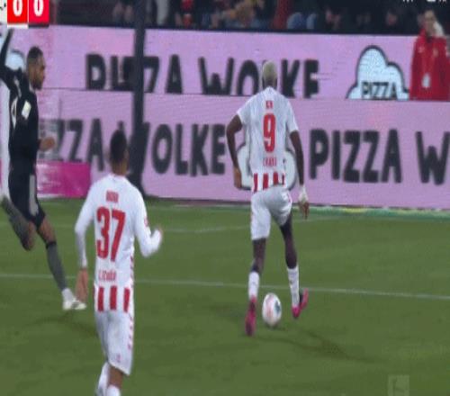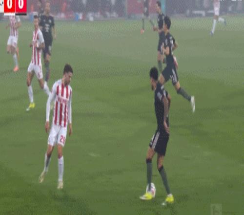 第41分钟,格纳布里失误被断,马伊纳带球反击远射破门!科隆1-0拜仁