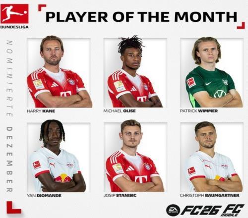 体育播报12月31日宣 德甲官方评选出12月最佳球员候选名单,其中凯恩、奥利塞、斯坦尼西奇等三位拜仁球员在列,具体如下: