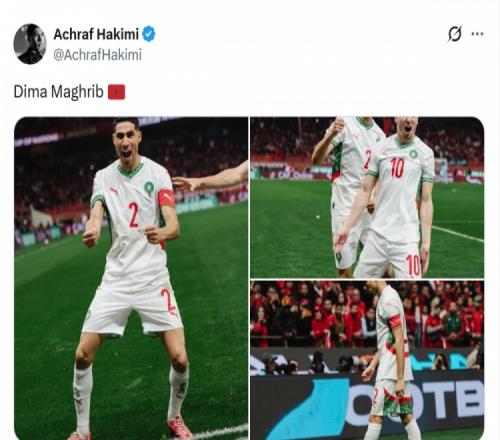 此役阿什拉夫为摩洛哥踢满全场,帮助球队取胜,赛后他在社交媒体上晒出比赛照片,配文:“永远的摩洛哥。”