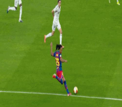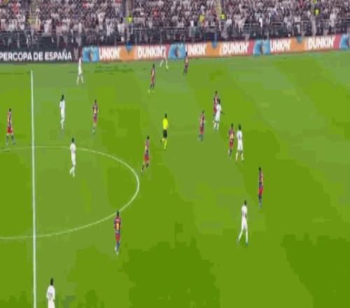 第36分钟,拉菲尼亚推射远角破门,巴萨首开记录1-0领先皇马!