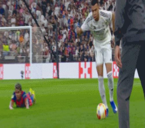 第30分钟,亚马尔突破被断,随后对贝林厄姆犯规