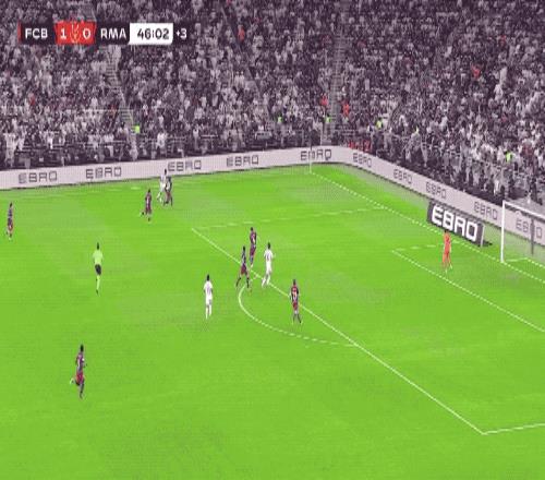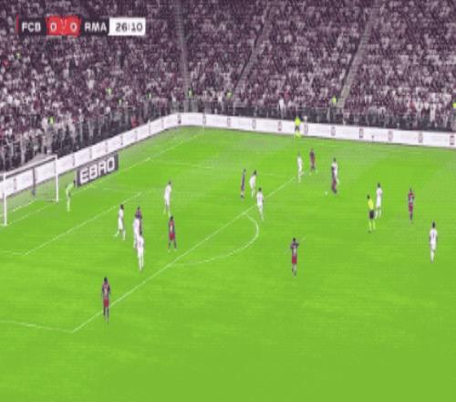 拉菲尼亚选择自己射门,琼阿梅尼防守不及,皮球打进远角,巴萨取得领先。