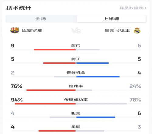 体育播报01月12日宣 西超杯决赛半场结束,巴萨暂2-2皇马,双方补时阶段连入3球,半场数据如下: 足球免费观看_皇家马德里免费观看_巴塞罗那免费观看_足球高清在线_皇家马德里高清在线_巴塞罗那高清在线