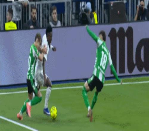 第6分钟,维尼修斯禁区内倒地,裁判没有表示