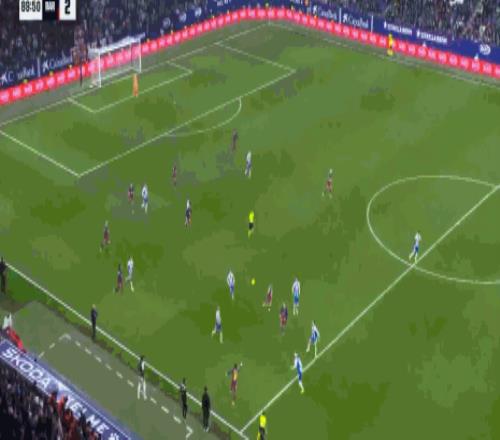 第39分钟,西班牙人左路快速反击,罗梅罗突破下底传中,米拉后排插上小禁区内一步超近距离强力头槌攻门,加西亚神勇将球托出底线。易边再战两队还是迟迟未能把握机会,第53分钟,孔德超近距离头槌攻门也是被德米特罗维奇奋勇扑出。直到第85分钟,巴萨中场反击,费尔明转身摆脱防守带球往前推进到禁区弧顶前斜塞左侧,奥尔默跟进迎球调整好脚步直接右脚大力兜射,皮球直挂球门左上死角,巴萨1:0打破僵局。3分钟后,巴萨又是中场快速反击,又是费尔明,他后排超车高速插上,得球强行突破回防球员杀入禁区,倒三角回传中路,后排跟进的莱万小禁区前沿迎球直接挑射得手,巴萨3分钟连进2球,2:0绝杀西班牙人。