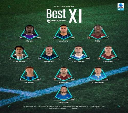 北京时间1月5日,意甲官方公布了联赛第18轮的最佳阵容,劳塔罗、泽林斯基、麦肯尼入选。