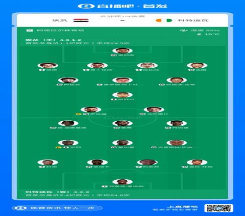 体育播报1月11日宣 非洲杯1/4决赛,埃及对阵科特迪瓦,赛前双方首发公布。