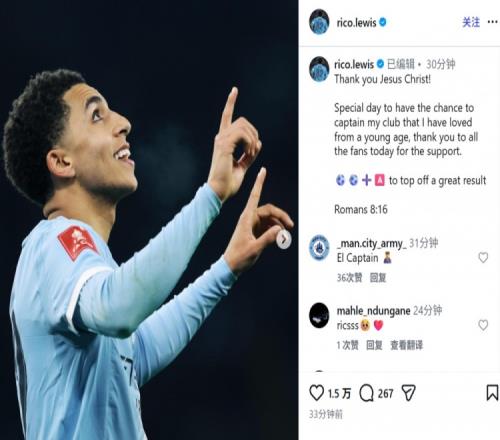 体育播报1月11日宣 曼城在本轮足总杯10-1大胜埃克塞特城,里科·刘易斯在本场比赛中接过了队长袖标并且独造3球。