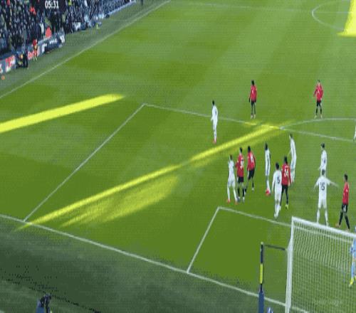 第40分钟,还是卢克肖的角球,卡塞米罗头球摆渡,约罗近在咫尺的头球攻门,居然被佩里扑了出来。