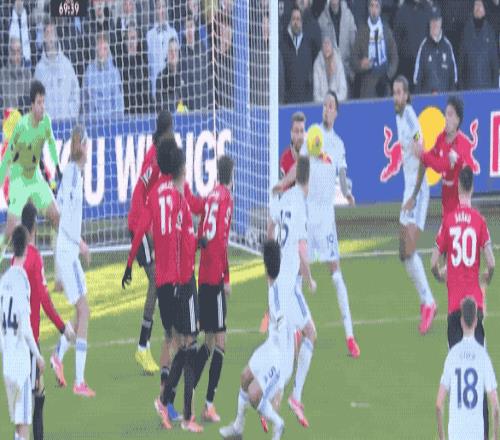 第30分钟,曼联三名后卫配合,卢克肖开出角球,利马回做,达洛特原地摆腿的射门,放了高射炮。