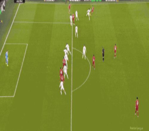 第31分钟,利物浦的传中制造威胁,加克波鱼跃冲顶,皮球击中立柱,弹了出来,相当可惜。