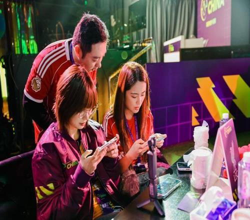 参赛选手感受足球游戏的对抗乐趣。