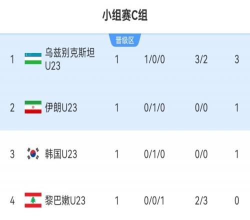 在首轮比赛中,黎巴嫩2-3不敌乌兹别克斯坦暂居小组垫底,韩国0-0战平伊朗排名小组第三。
