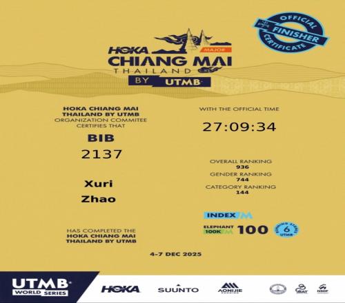 体育播报01月10日宣 据知行合逸知行君消息,前国脚赵旭日以27小时09分34秒成绩完赛2025泰国清迈by UTMB 100公里组别,最终排名男子组第936名,这是他完成的第一场百公里比赛。
