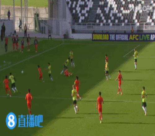 第57分钟,李镇全在一次拼抢中直接铲倒澳大利亚球员,裁判赶来出示黄牌。